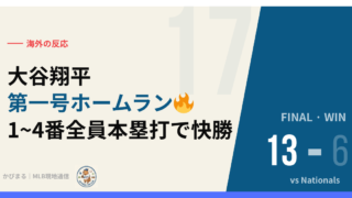 4月 【大谷1号ホームラン】1~4番全員本塁打でドジャース打線爆発 { "@context": "", "@type": "NewsArticle", "headline": "【ドジャース4/3】大谷翔平2026年1号3ランで打線が覚醒——1~4番全員本塁打・5本塁打・16安打13得点で... 2026.04.04 4月