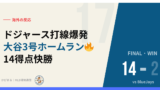 大谷2号(114.6mph・438ft)、テオスカー1号(103.0mph・414ft)、ラッシング1号(103.0mph・375ft)と3本のHRが全てスコアに直結した。特に大谷は犠牲フライまで含め2打点で逆転劇の核に。テオスカーは打率.345と今季絶好調をキープしている。