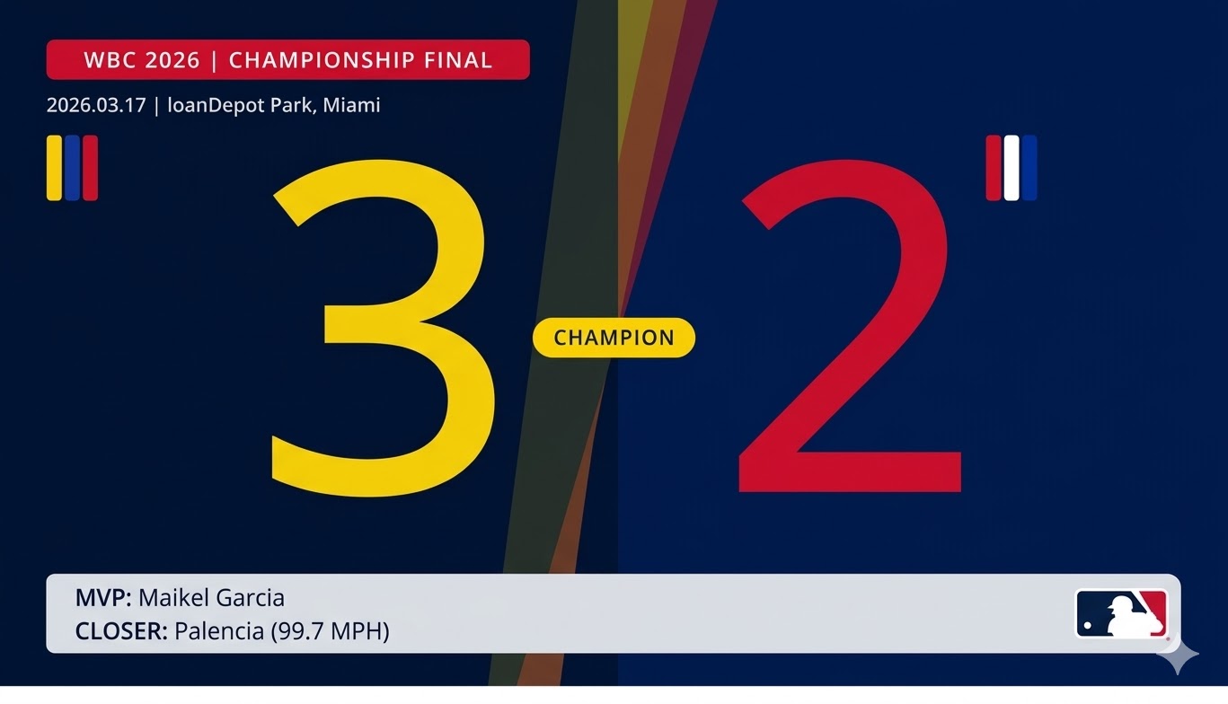 「ベネズエラが2026年WBCで優勝!火曜夜の接戦を3-2で制し、ウィルヤー・アブレウとエウヘニオ・スアレスの活躍に支えられ初のWBC王者に輝いた」